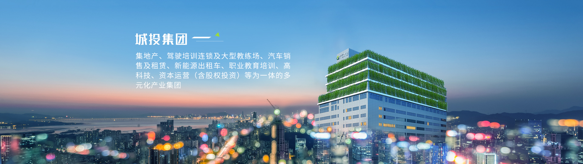 城投集團(tuán)堅(jiān)持“愛(ài)黨愛(ài)國(guó)、孝敬父母”的核心企業(yè)文化,主要業(yè)務(wù)為高科技、互聯(lián)網(wǎng)、基金投資、地產(chǎn)開(kāi)發(fā)、職業(yè)教育培訓(xùn)、駕駛培訓(xùn)、汽車銷售及租賃、出租車運(yùn)營(yíng)等。